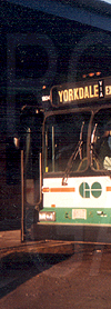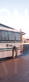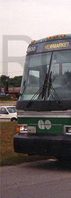 | GO Transit 1990 built NewFlyer D40-90 suburban #1904 is seen at the Newmarket Bus Terminal on February 3, 1999. The bus is featuring a similar rollsign set as the first yellow print sign set on this page. |
