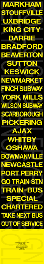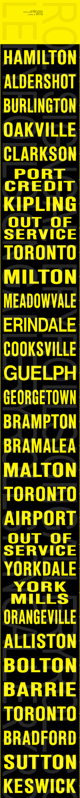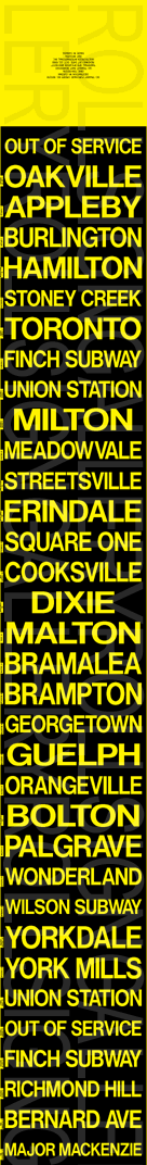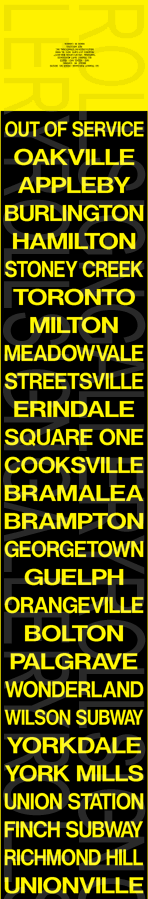 | Rollsigns from GO Transit, ON P A G E 2 o f 2 (The Black and Yellow Era) |