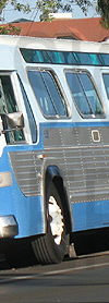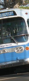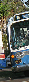 San Diego Transit GMC New Look #639, the type of bus this sign was designed for, is seen westbound in 1st Street near F Avenue in Coronado, California during a 2010 fan trip. (Photo by Jim Knight. Used with permission.)