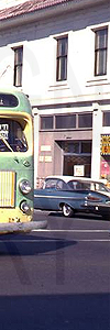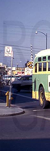 | A rare color image of a San Mateo-Burlingame Transit suburban GM Old Look is seen in this undated and unknown location photo. (Photo from the collection of Jim Husing. Used with permission.) |