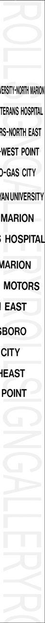 | This mylar rollsign set was retrieved from City of Marion Public Transportation's July 2003 built Ford E450 cutaway bus #1. Neither sign has a print date, but they're the only signs that occupied this bus while in service for Marion . Each sign has 15 exposures. The images of these rollsigns have been enlarged to 1.5x that of other signs on this site to show better detail. |