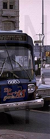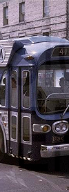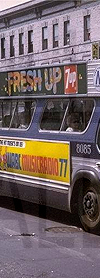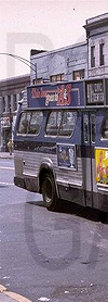 New York City Transit 1967 built GMC TDH-5303 #8085 with the "Bus-O-Rama" roof mounted advertising frames and displaying a rollsign over the center doors from the same run as this sign, is seen at "The Junction" in Brooklyn, on Flatbush Ave. at Nostrand Ave.on Route (B) 41 heading to downtown, in the 1970s. (Photo from Pinterest.)