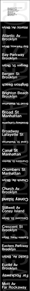This info was supplied by Jerrold P. Gultz, a NYC rollsign collector: