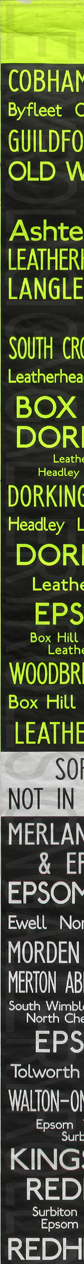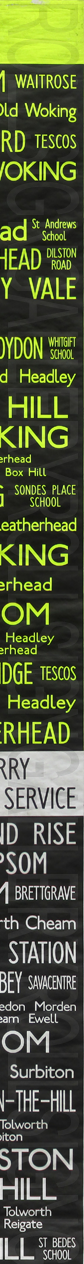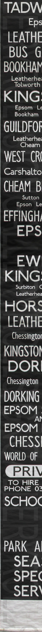 | This blind has 56 exposures. The image of it has been enlarged 1.5x to enhance detail. Some of the exposures on the blind are grouped together so that the readings overlap one another, to shorten the scroll length and be an overall cost saver. For instance, the last three lines of text are two different readings: "SEASIDE SPECIAL" and "SPECIAL SERVICE". |