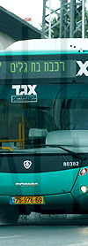 | Haifa, Israel's bus #80382, a Scania N-series chassis under a locally built body by "Ha'argaz LTD", is seen nearly new, only in service for a few days, on Line 37 that crosses Hifa city from one side to the other on March 21, 2015. This is an example of the buses in service these days. (Photo by Matan Zilberstein, used with permission.) |