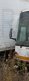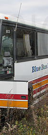 | Blue Bus Line's February 1995 built MCI 102-D3 #803 (Serial number: IM8-SDMTA 3 SP047219), a former Arrow Stage Lines bus, and still displaying the rollsign shown here, is seen as it was discovered at a Chicago area scrap yard on November 7, 2023. |