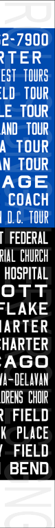 | Information on the history of Central West Motor Stages is sparse. Trademark records show the first use of the company's name as a charter bus service based out of Chicago, Illinois was in October 6, 1981. Trademark applications were submitted on January 26, 1989, with registration approval occurring on October 31, 1989. The company's trademark expired on May 6, 1996. A company with the same name based out of Texas but with its headquarters listed as in Chicago also exists. With the operational name of Central West of Texas, initial registration was filed on August 28, 2018, but expired on July 23, 2020. It is unknown if the company still operates today. The rollsign shown below was removed from a retired bus where, on its back window, had the ghost image of the carrier Mid-America Bus Company. As a family owned and operated service since 1947, American Consolidated Transportation Companies, Inc. (known as Mid America) expanded from a school bus company in rural Illinois into a complete ground transportation system serving education, corporations, seniors, churches, special event groups and the travel industry, with services based in Illinois, Colorado and Texas. The current company, Mid-America Coach Lines and Tours Inc. with its headquarters in Elk Grove Village, Illinois still operates to this day. |