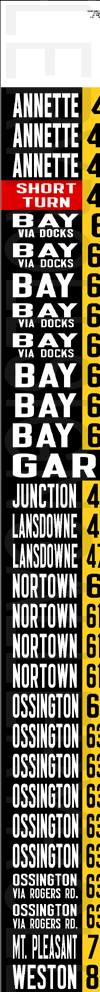 | John McDonnell was an avid collector of transit related memorabilia among other things. Among his collection were several custom made rollsigns. When he passed away in 2019, his will stated that many rollsigns from his collection including these custom made ones shown here, were to be donated to Rollsign Gallery. He was a big fan and supporter of the site, and knew they would be in good hands and well preserved in my possession. He was a good friend, and will be sorrowfully missed. |