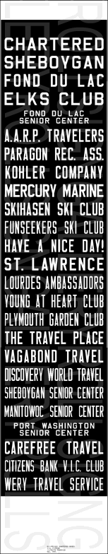 | Rollsigns from The Prigge's Family Prigge's Chartered Buses & Discovery Coach, Sheboygan, Wisconsin |