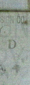 The stamped sign tag and print date on the upper section of this rollsign: