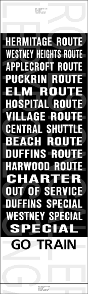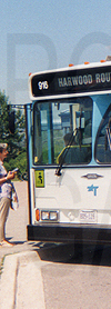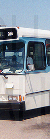 | Ajax Transit 1990 built OBI 05.501 Orion V #916 is the bus this rollsign may have been designed for. If so, that would be the sign seen above the windshield. It is seen at the Ajax GO Station on July 17, 1996. |