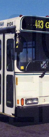 | Durham Region Transit 1991 built OBI 05.501 Orion V #8134 (ex Oshawa Transit #134) is seen in service at the Oshawa GO Station. This is the type of bus these signs were designed for. (Photo by Angelo Bowers. Used with permission.) |