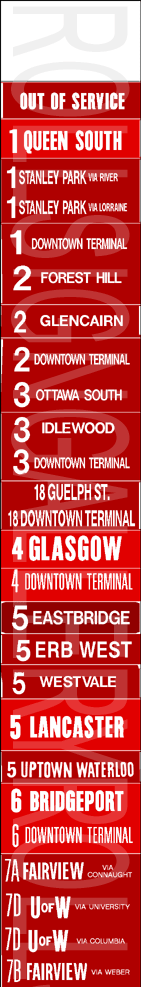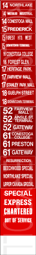 | Rollsigns from Grand River Transit Kitchener and Cambridge, Ontario |