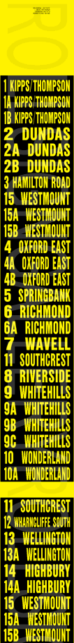 | This side sign is off London Transit's 1998 built OBI 02.501 Orion II #12. It is dated March 25, 1998 and has 81 exposures including the yellow blanks. Its sign tag is shown below. |