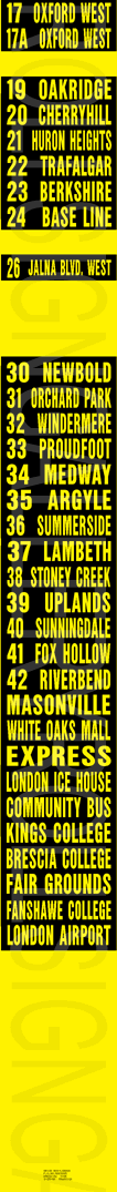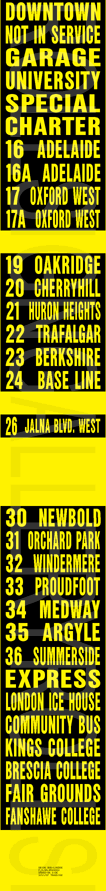 | to go to the earliest London Transit electronic sign list page. |
