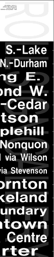 | This mylar side route sign is off of 1973 built GMC T6H-5307N #95. It has no print date. It has 24 exposures (including the blanks). The "10 Bond West" and "9 Mary" readings were painted on later. |