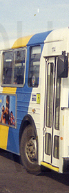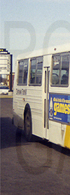 Oshawa Transit 1979 built Flyer D900 #114, featuring rollsigns similar to the first four on this page, is seen in service at the Oshawa Centre terminal on February 25, 1999.
