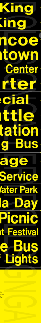 In 2000, Oshawa Transit had yet another tag-on sign set printed to update their rollsigns. These mint condition tag-ons are
