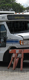 Retired Sarnia Transit 1997 built Ford Econoline Low Floor (ELF) #972, showing the rollsign seen above right, is seen with other retired buses at the back of the Sarnia Transit yard on September 18, 2009. |