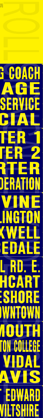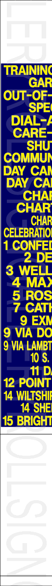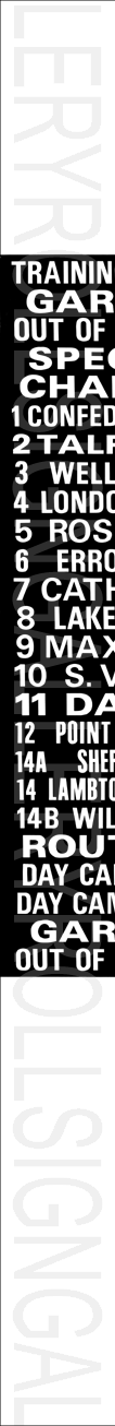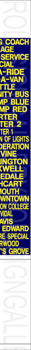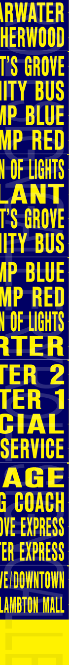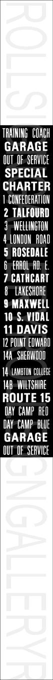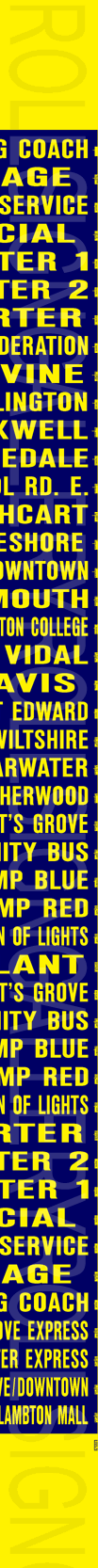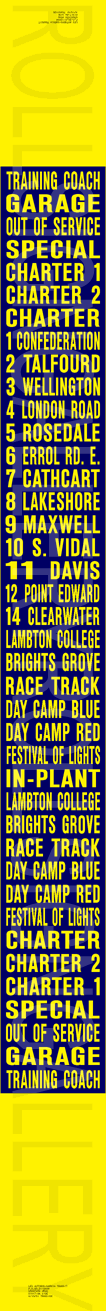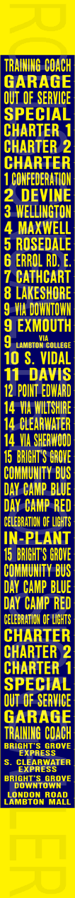 This set of mylar rollsigns was given to me by Sarnia Transit. They both have no printed date, and each has 25 exposures. These were printed before a system-wide change in 1992. |