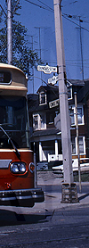 | Electric trolley bus use in Toronto dates back to June 18, 1922, when the Toronto Transportation Commission operated four Packard Eds. Their service was short lived, and ended on August 31, 1925. Trolley bus service wasn't reintroduced until June 19, 1947. Its second incarnation at first used Canadian Car & Foundry built Brills, and ex Cincinnati Street Railway Marmon-Herrington trolley buses. In the early 1970's, Flyer E700 trolley buses were introduced. The Flyers became the mainstay of the trolley coach system until 1992. After rising expenses of the aged trolley coach infrastructure and the introduction of Compressed Natural Gas Orion V buses, the entire trolley coach system was shut down. Flyer #9247 made the final run on the Bay 6 route on January 19, 1992. This wasn't the end however, as on September 4, 1992, the system was re-energized once again. Having scrapped a number of the Flyers, the TTC turned to Edmonton, Alberta and its Edmonton Transit System, to lease several Brown Boveri trolley coaches. These buses, with GMC New Look bodies, offset the requirements for the TTC, and the system was alive again. This third and final revitalization however was a short one as, on July 16, 1993, the trolley coach system was once again shut down, this time for good. This time, leased Edmonton trolley coach #9151 (ETS #151) was the final coach to operate on Toronto's system. Over the next year the entire infrastructure was disassembled, leaving little remnants of the TTC's use of electric trolley buses. Historically, the TTC operated several routes out of two garages, Eglinton Garage, and Lansdowne Garage. The trolley coaches had different rollsigns than their diesel counterparts. One theory to the system's downfall was that the two garages that operated these buses were not linked by trolley wire, and transfers of equipment between garages had to be done by towing the vehicles. |