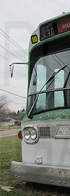 | Retired Golden Gate Transit GM New Look #800, shown here displaying a front route number rollsign similar to this, is seen in a private yard in western Ohio on March 7, 2016. |