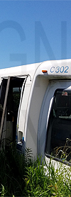 | This mylar front rollsign was removed from the Ford cutaway seen in the lower photo. This Transign printed rollsign has no print date on it. It has 15 exposures. This sign was donated to Rollsign Gallery by Peter Huffman. Thank you! |