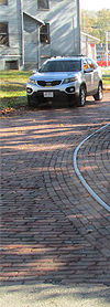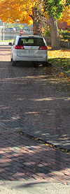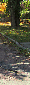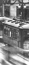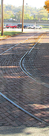 | (Above) Various Columbus, Newark & Zanesville Street Railway cars operating through downtown Zanesville, Ohio. - (Below) Streetcar track that still exists (October 28, 2019) in south Zanesville on Washington St. There's also visible track on Jefferson St. and its likely still buried under the asphalt on Woodlawn Ave. between these two streets. (Above photo courtesy of the SEAT website prior to April 2019, from an internet archive search. Below photo by Joseph Chemerys.) |