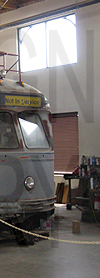 | A SEPTA PCC streetcar, like #2120 pictured here in Kenosha, Wisconsin, would have been the type to house the two rollsigns seen above and right. |