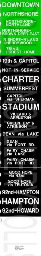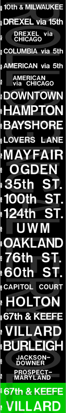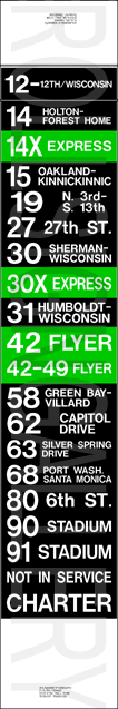 With the retirement of the remaining GMC new looks in 2000, this brought an end to rollsigns in active buses in Milwaukee, as their current fleet is 100% electronic destination signs.