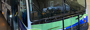 | Photos of Gillig Low Floor BRT #1401 (above) and Gillig Low Floor #0905 (below) inside the Muskegon Transit garage, each showing different exposures from the new sign program provided by Rollsign Gallery, seen in September of 2020. (Photos by Transit Supervisor, Jason Tubergen.) |