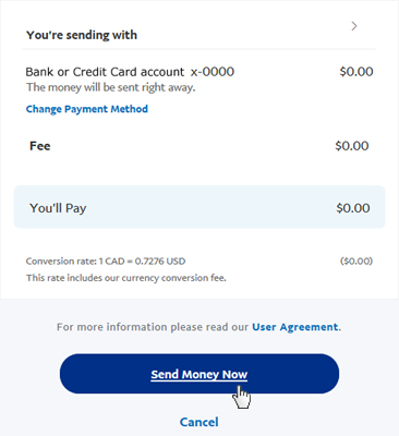 on "Send Money Now". If any changes need to be